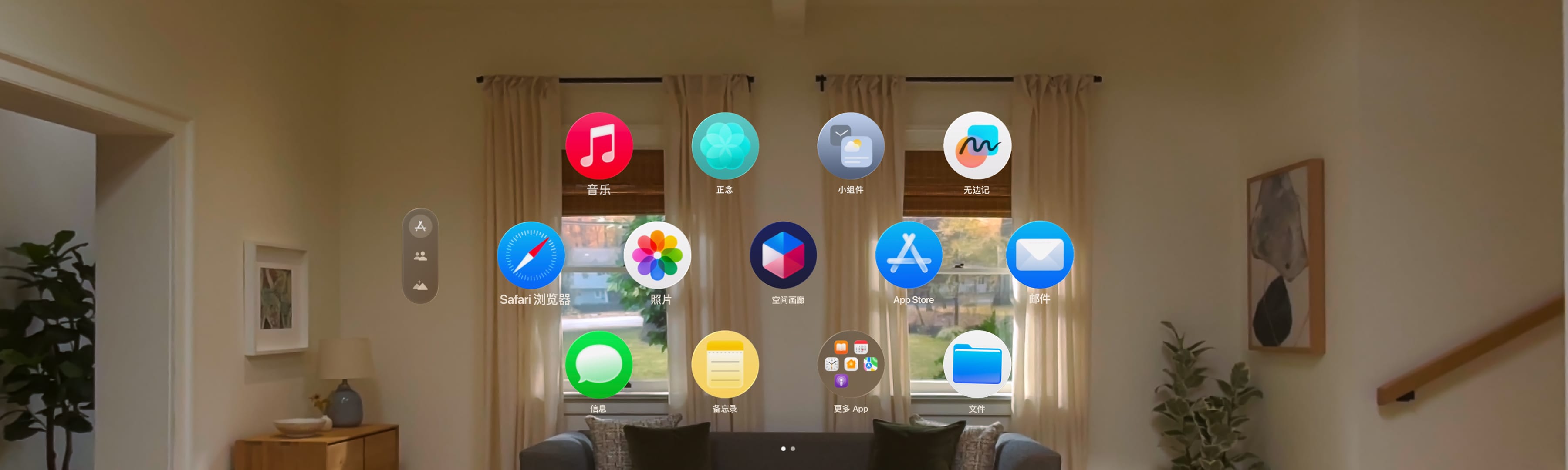 借助 Mac 虚拟显示器,可以将 Apple Vision Pro 用作 Mac 的专用便携式显示器。